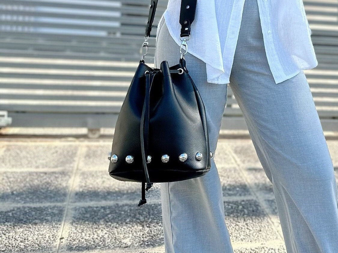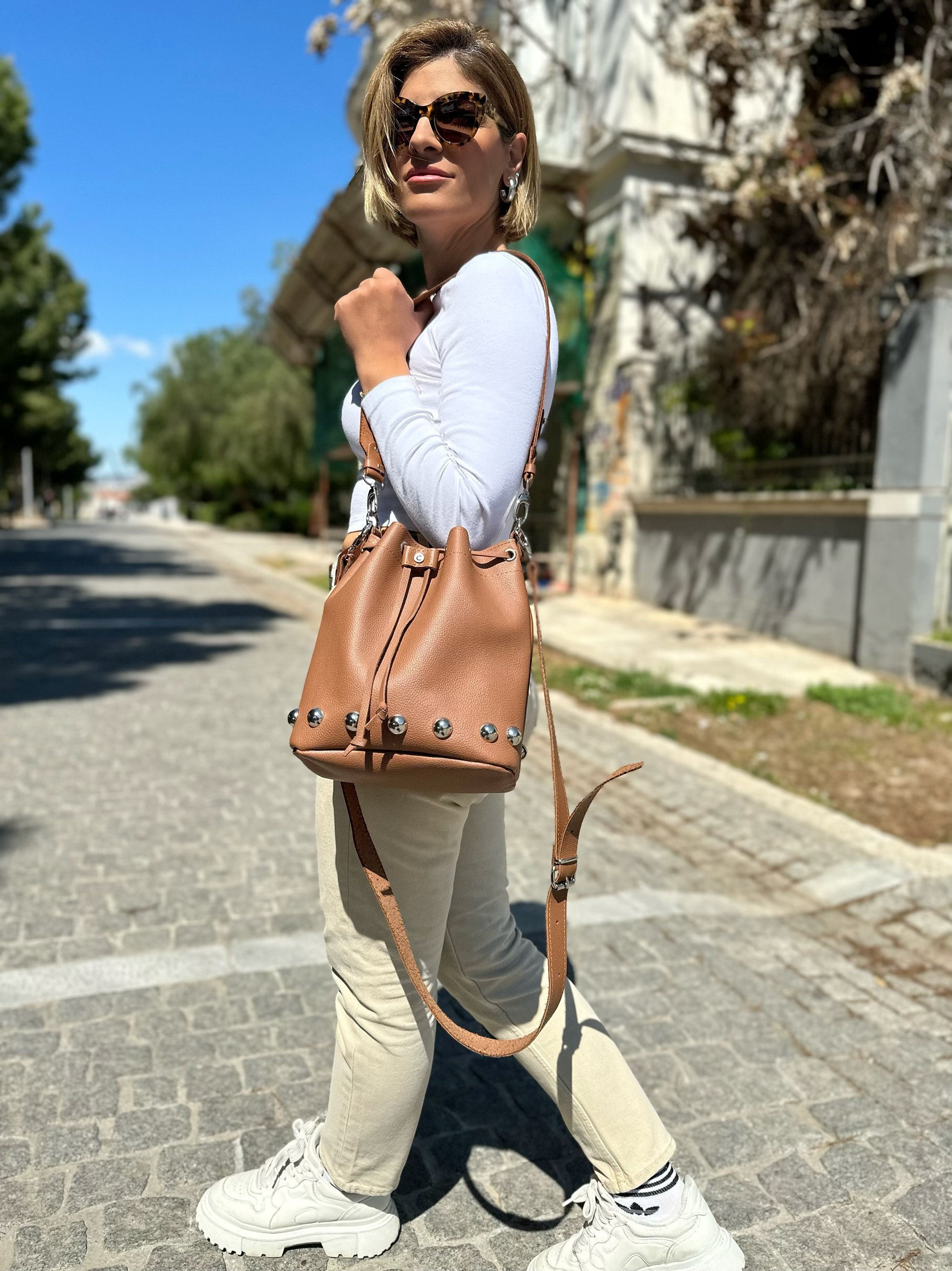 *Handmade Leather Shoulder Bag*: Experience the epitome of artisanal excellence with our extraordinary Leather Shoulder Bag. Painstakingly handcrafted from genuine cow leather, this exquisite bucket bag showcases a captivating blend of boho charm and sophistication. The silver stud embellishment along the bottom adds an additional touch of allure. Its spacious interior effortlessly accommodates all your essentials, while the interchangeable 60 cm shoulder strap and 110 cm crossbody strap offer unparalleled versatility. Elevate your style with our’s unrivaled luxury and flexibility.