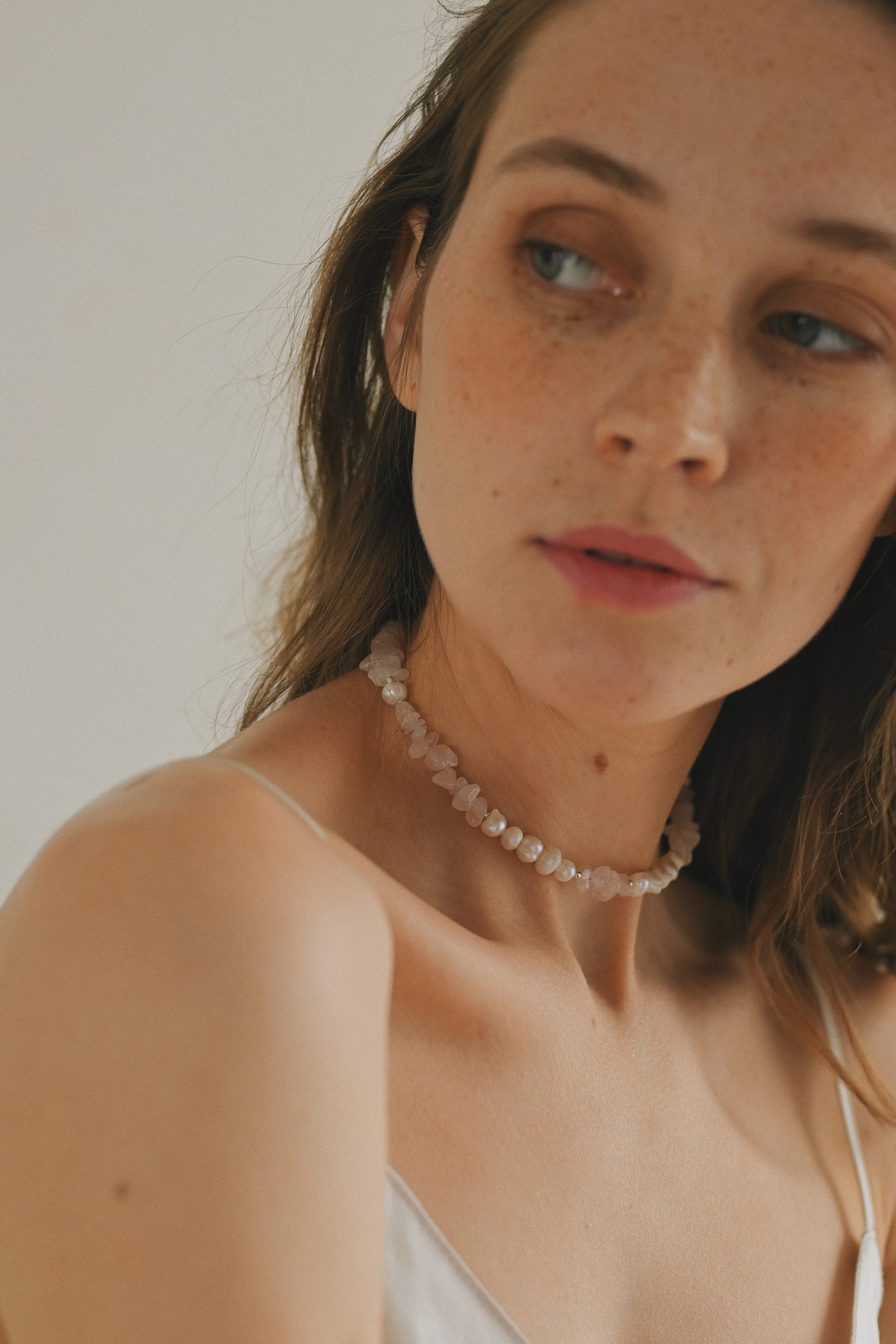 Handmade Freshwater Pearl Choker: Gemstone Beaded Necklace, Sterling Silver