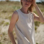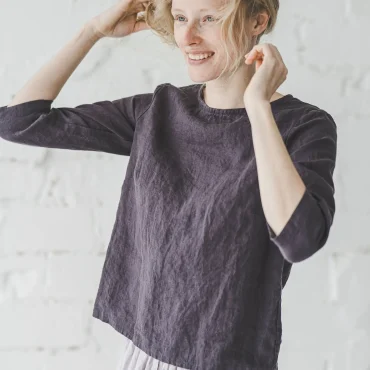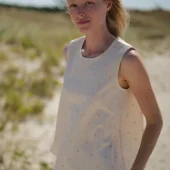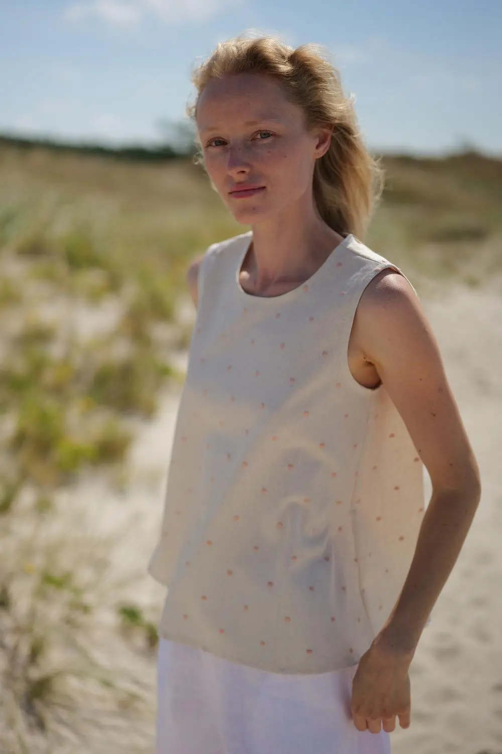 Light, cozy and cute – our Summer Polka Dot Top Cumbia. Made of 30% linen and 70% viscose blend. Basic design and unique color and pattern combination makes this top your effortless summer statement piece. Enjoy quality and comfort and feel like wearing nature at the same time. MODEL IS ALSO WEARING: Heavy Linen Shorts Clover Product number: T33 • Made from soft wash medium weight (185 gsm) 100 % European linen fabric.