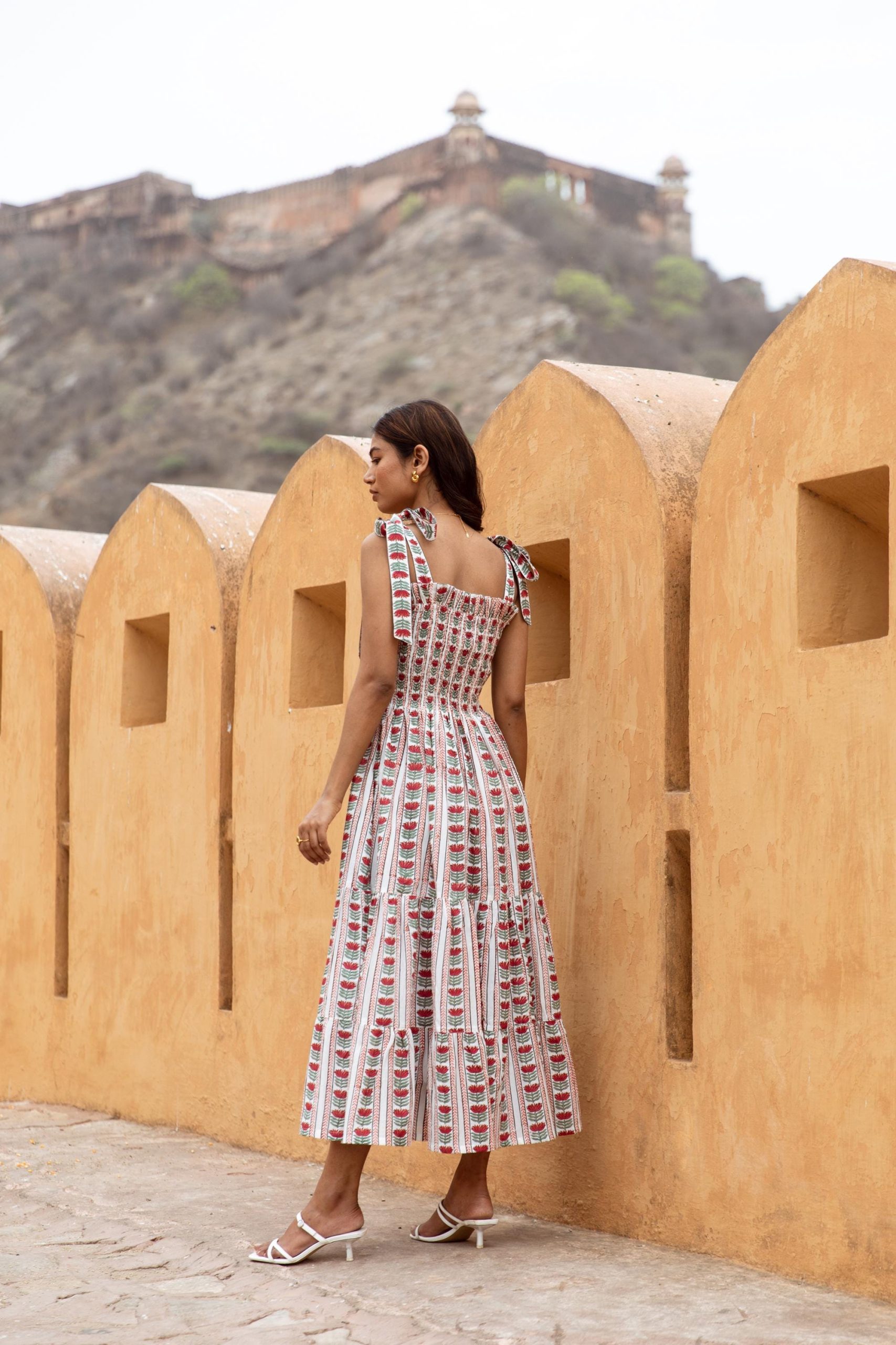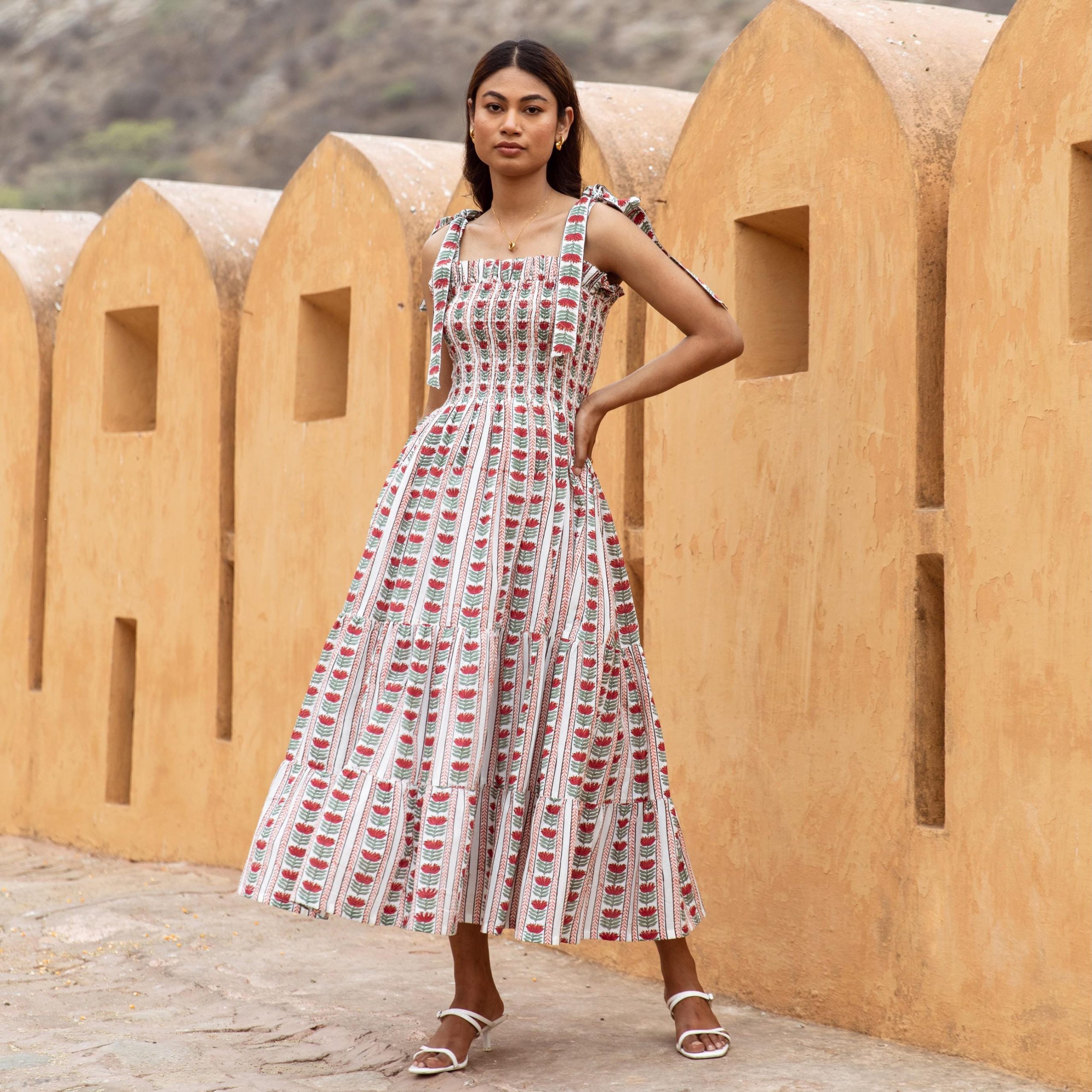 Beautiful sundress, designed in London and made in Jaipur, India, using the traditional art of hand block printing.